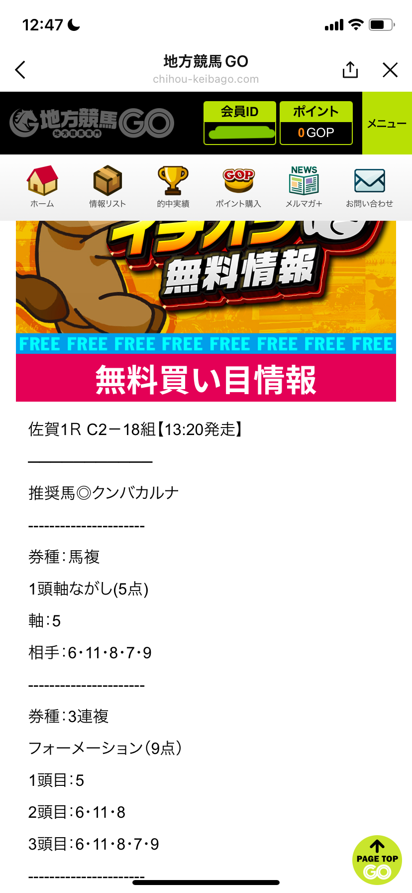 毎日公開されてる無料予想のはずなのに