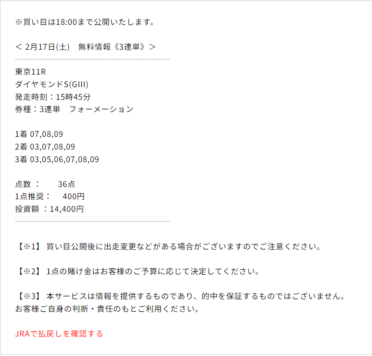 的中率 回収率 無料予想 有料予想 高配当