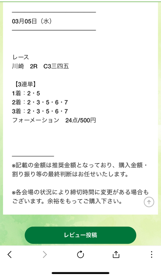 馬券代は1点ワンコインとお財布に優しく