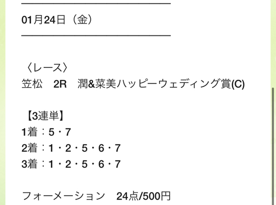 あさイチからオススメされた無料予想の買い目獲ってたので