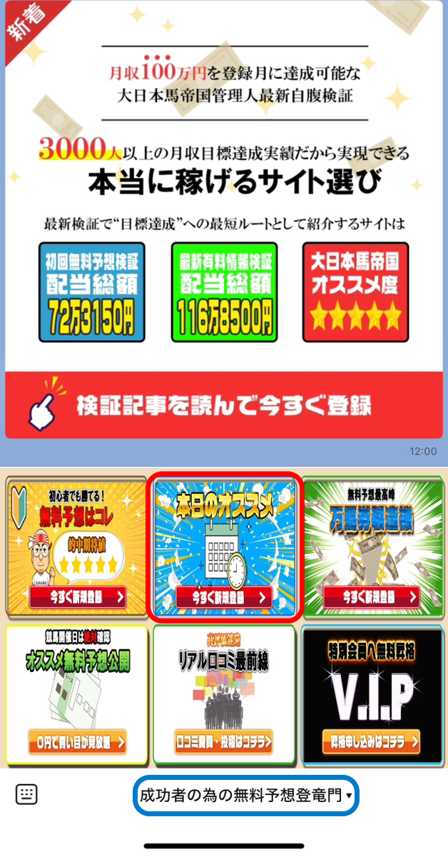 ここをタップすると当日のおすすめ無料予想が教えてもらえるのですが